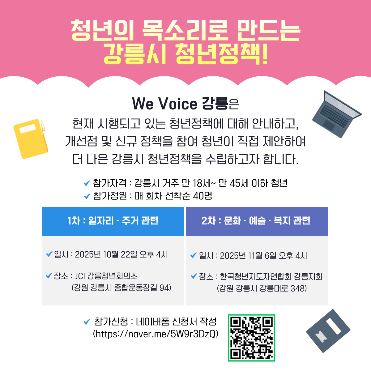 2025년 청년소통활동 "We Voice 강릉" 참가자 모집 안내