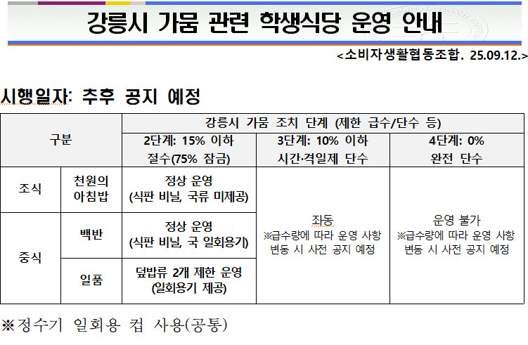 [식당] 강릉시 가뭄관련 학생식당 운영 안내(수정)
